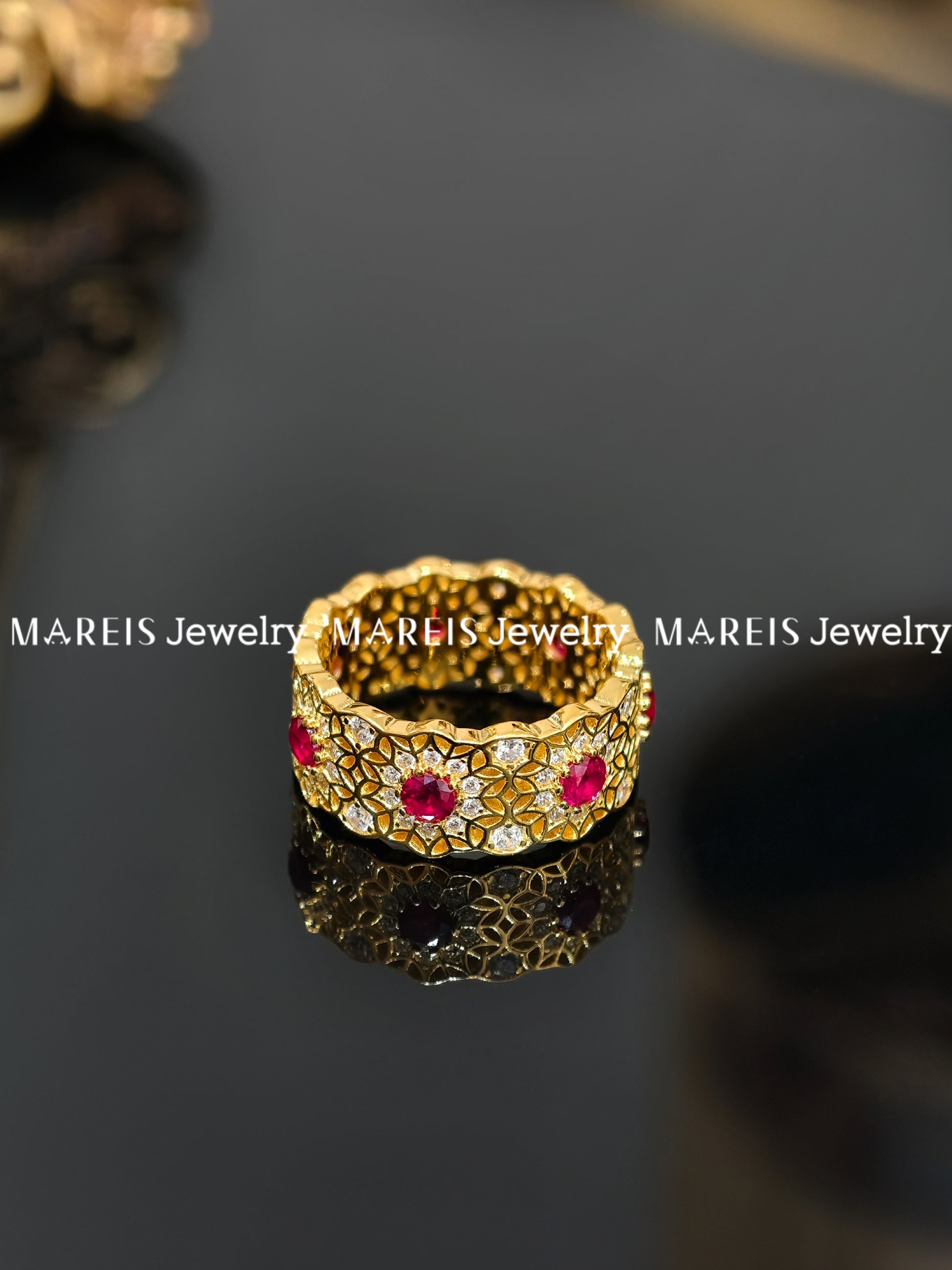 18K Gold Plated Rose Window Ring