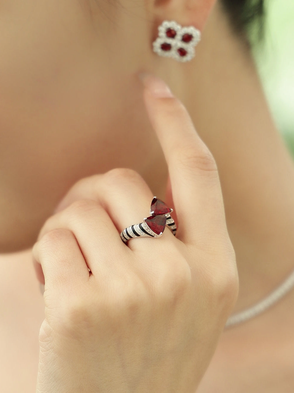 Material: S925 sliver & natural garnet & cubic zirconia