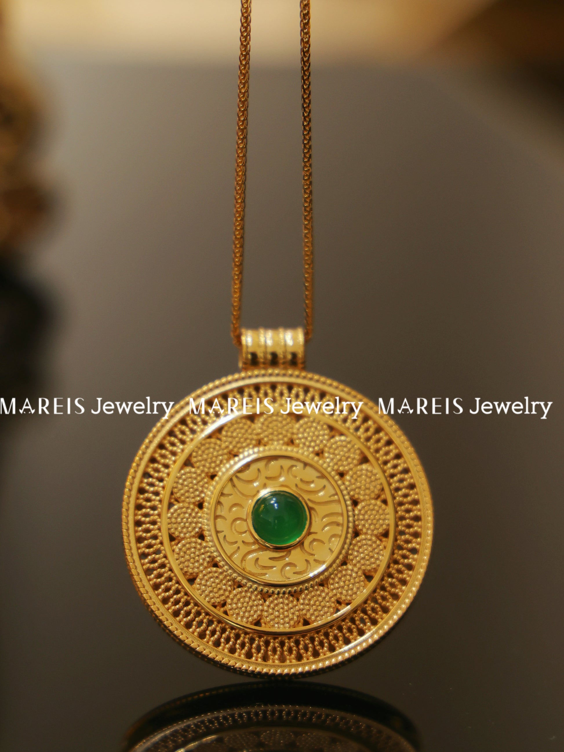 18K Gold Plated Sacred Green Gem Compass Necklace